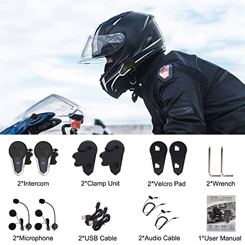 【Guida Più Piacevole】 La solida caratteristica impermeabile assicura che l'auricolare della moto sia resistente al sudore, all'acqua e alla pioggia. La tecnologia avanzata di riduzione del rumore DSP blocca il rumore di fondo dirompente. Questo sistema di comunicazione del casco ti consente di passare facilmente tra telefonate, interfono e musica stereo. Rende al 100% la tua esperienza di guida più piacevole.