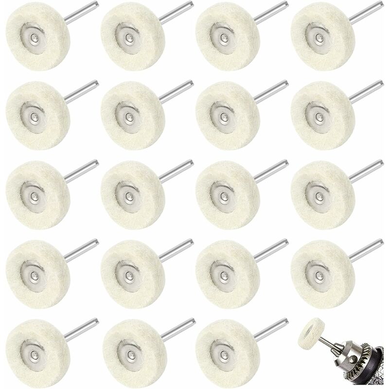 Prestazioni eccellenti: La ruota di lucidatura da 25 mm ha la buona fattura e stabilità per levigare, lucidare e pulire vari tipi di metalli, legno, plastica e così via. È molto adatto per scanalature, lucidatura a specchio. Può essere utilizzato sia per la levigatura che per la lucidatura, non danneggia il pezzo e può lucidare la superficie in modo rapido e preciso. Perfetto compatibile: La mola per lucidatura del trapano funziona bene con la maggior parte delle smerigliatrici, è adatta per smerigliatrici rotative pneumatiche o elettriche che possono fissare perfettamente il gambo da 3 mm. Può funzionare in modo efficiente. Materiale di alta qualità: Il disco per lucidatura del trapano è realizzato in lana di alta qualità, ha una buona fattura, è forte e durevole, non cade facilmente dai capelli, la parte centrale e il gambo sono realizzati in metallo superiore, ha una lunga durata . Design conveniente: Il tampone di lucidatura è composto da due parti, la testina di lucidatura in