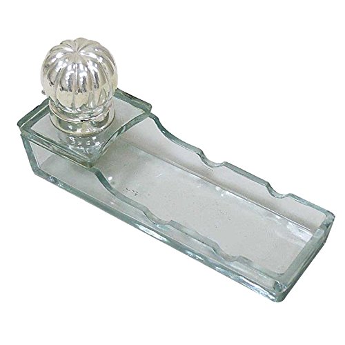 Better & Best 1224883 - Calamaio/Portapenne di Vetro Rettangolare, con Coperchio a Forma di Sfera con Gallones di Colore: Argento