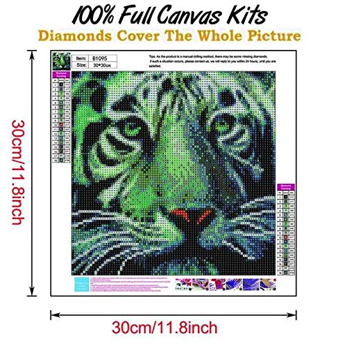 Better Selection Kit Fai da Te 5D per Pittura a Mosaico con Tigre Bianca, Ricamo a Punto Croce con Strass per Ricamo a Punto Croce per Decorazione da Parete Domestica 30x30 cm