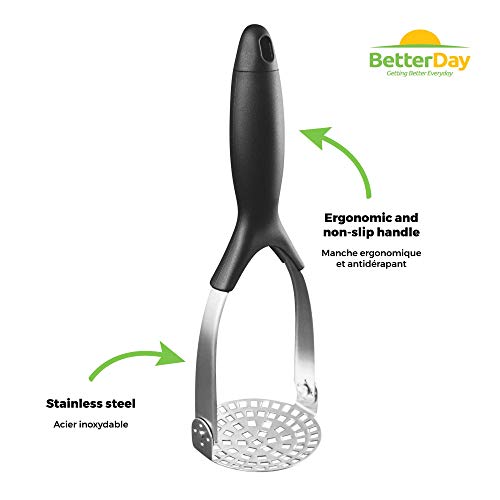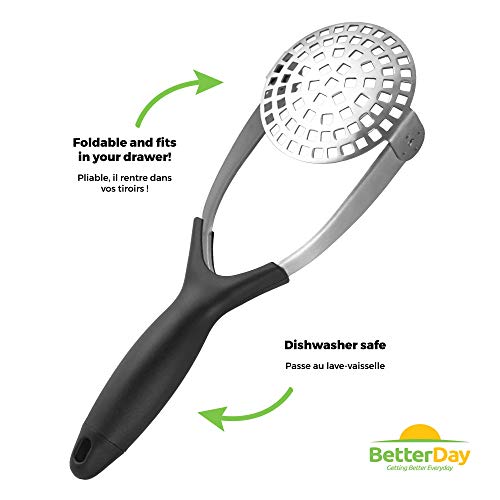 BetterDay Schiacciapatate Manuale Professionale Verticale Resistente in Acciaio Inox Pieghevole per Purè di Patate o Purea di Verdure - 3 Ricette Speciali di Pure'