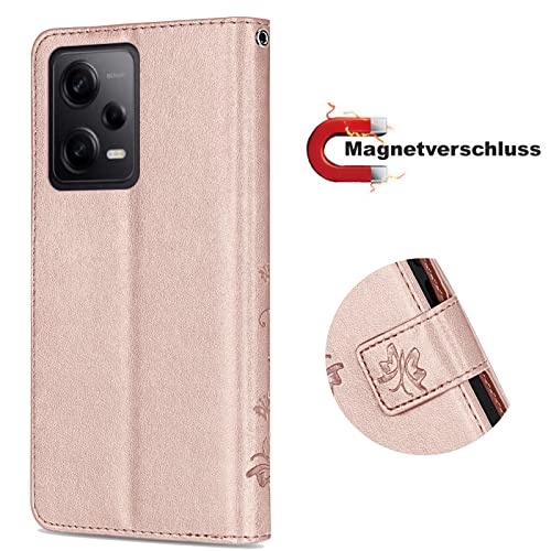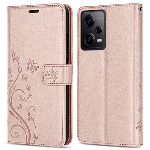 Betterfon Custodia per Xiaomi Redmi Note 12 Pro+, in pelle PU, con funzione di supporto, scomparti per carte di credito, colore: oro rosa