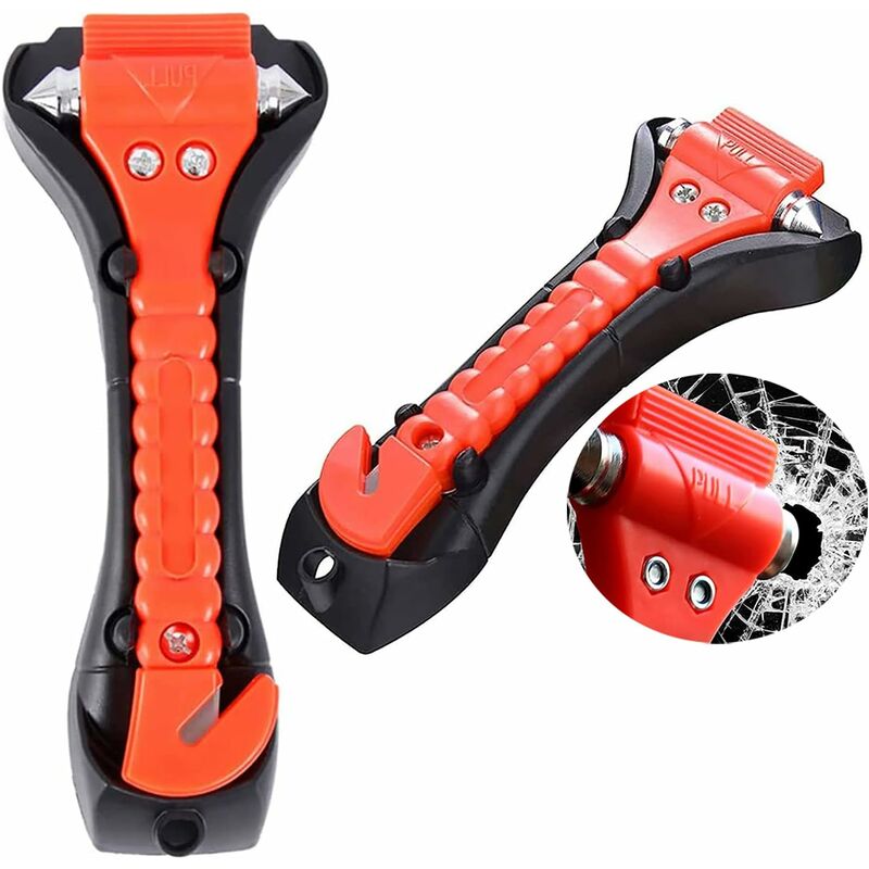 Martelli per rompere i finestrini - : martello per rompere i finestrini a doppia estremità, con punte in acciaio inossidabile rinforzate e appuntite per rompere i finestrini del veicolo e tagliare le cinture in caso di emergenza. 【Taglia cinture di sicurezza】: taglia cinture di sicurezza con lametta sotto scorta. Il martello taglierà le cinture di sicurezza quando necessario. 【Staffa fissa】: il martello non cadrà nemmeno in caso di collisione. Devi solo rimuoverlo dalla tua auto in caso di emergenza. 【Strumento essenziale】: il martello di emergenza è un componente indispensabile in ogni veicolo in caso di emergenza dei passeggeri. 【Facile da usare】: Pressione minima richiesta per rompere i bordi del vetro. Set di quattro martelli da condividere con la famiglia o gli amici. Compatti, leggeri, si inseriscono facilmente nel vano portaoggetti o sul lato della porta. Specifiche: Materiale: acciaio al carbonio ABS Dimensioni del prodotto: 19,2 x 7,3 x 3,4 cm Pacchetto che include: 2 x