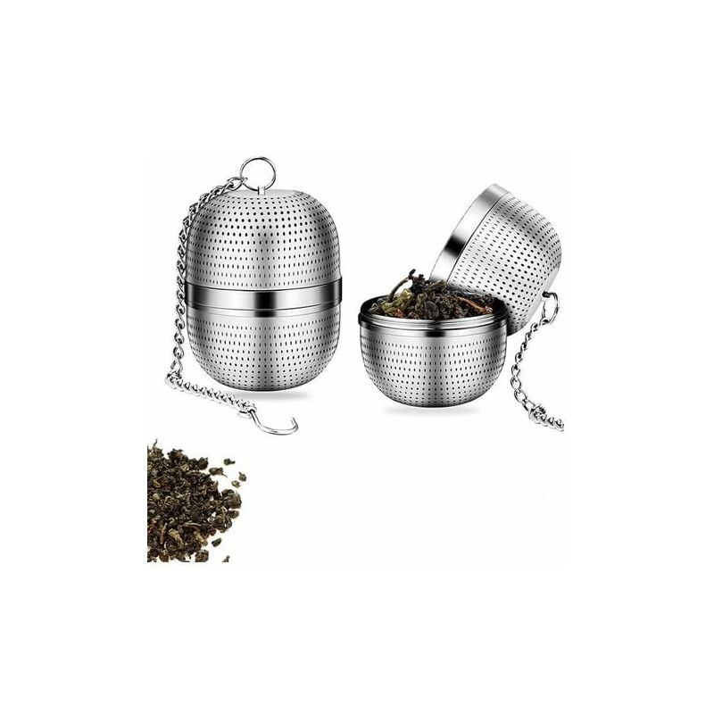 Acciaio inossidabile per uso alimentare: il nostro infusore per il tè è realizzato in acciaio inossidabile 304 per uso alimentare, sicuro da usare. La sicurezza dell'immersione in acqua calda è maggiore rispetto all'utilizzo della plastica. Le foglie di tè possono fluire liberamente, rilasciare rapidamente l'aroma e preservare e preservare il miglior gusto del tè. Rete filtrante fine: la rete ultra fine garantisce una macerazione priva di particelle, una filtrazione fine, che rende il tè più limpido. Può evitare residui di tè quando si beve il tè, così puoi provare il gusto perfetto del tè. Rispetto ai filtri da tè convenzionali, la maglia fitta può contenere facilmente foglie di tè fini e filtrare efficacemente le foglie di tè senza compromettere il rilascio dell'aroma. Facile da usare: la catenella con gancio non scivola nella tazza a causa dell'oscillazione, che aiuta a prevenire ustioni. Inoltre, è facile da prendere e posizionare. La sfera del colino da tè è filettata e ha