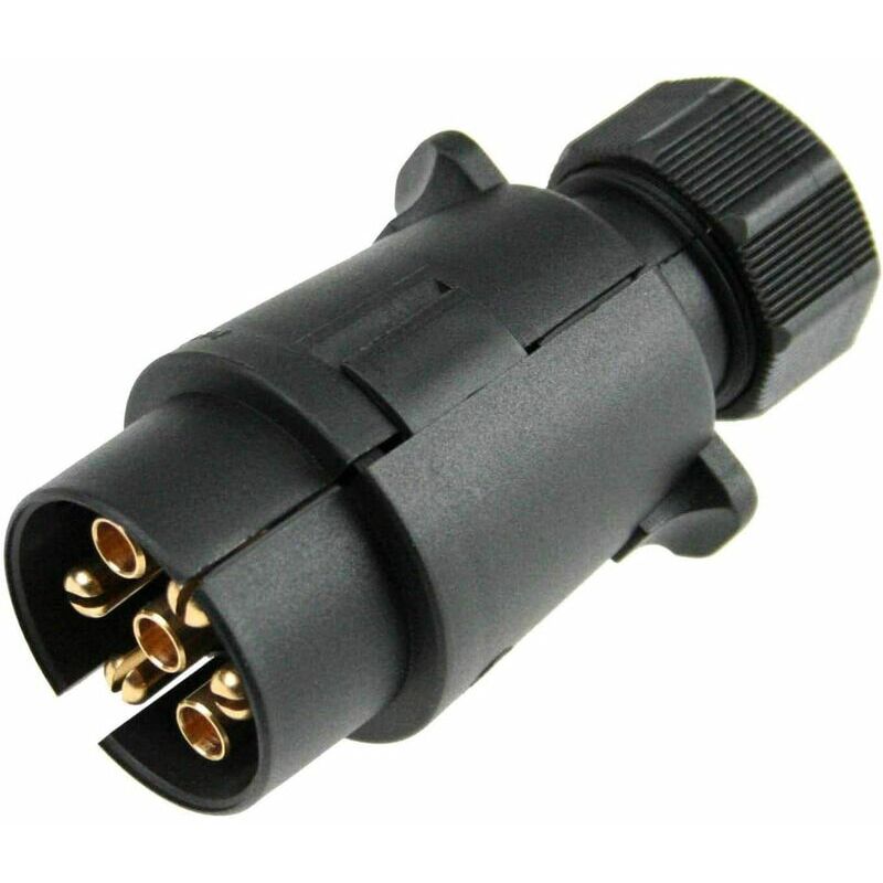 Spina a 7 poli per rimorchio per auto o roulotte, 12 volt Avvitabile per cavo da 8,5-10 mm, per cavo di collegamento a 7 poli Spine elettriche in una presa a 7 pin - IP 44 - impermeabile Stabilisce una connessione sicura tra la tua auto e il rimorchio principale aggiuntivo trasferisce le luci di segnalazione elettroniche dal veicolo al rimorchio Alimenta la tua roulotte, il traino, e camion Colore: nero Materiale contatti: rame Materiale isolante: tecnopolimero Materiale calotta: PP Peso netto del prodotto: 95 g Numero di punti: 7 (per i modelli precedenti) Tensione in uscita: 12V Funzione principale: collegare camion e alimentatore, adatto per il display della luce di segnalazione del rimorchio. Quantità di spedizione: 1 pezzo