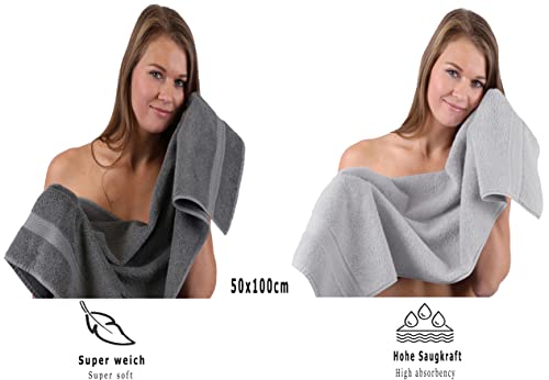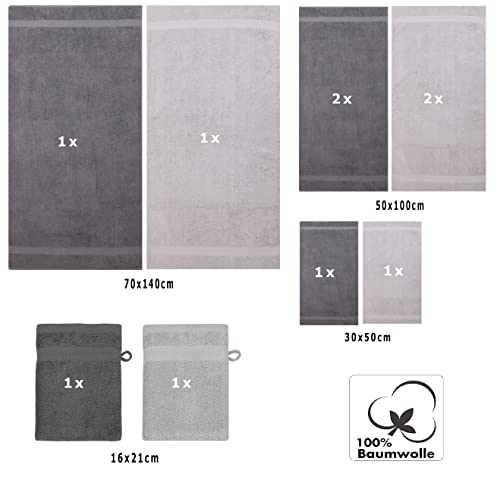 Betz 10 pz. Set Asciugamani Premium 100% Cotone 2 Asciugamani da Bagno 4 Asciugamani 2 Asciugamani Ospiti 2 Guanti da Lavaggio, Colore Grigio Antracite e Grigio Argento