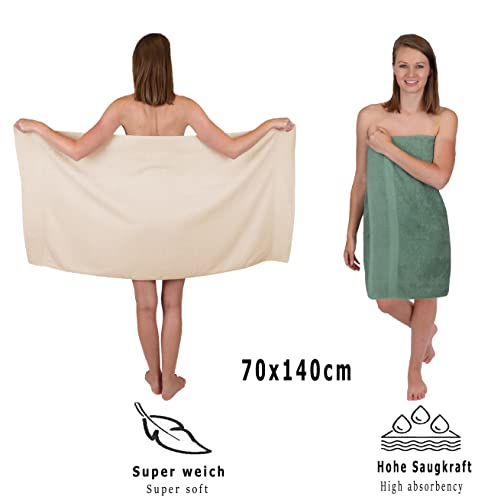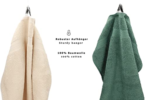 Betz Set da 12 Asciugamani Premium 100% Cotone 2 Asciugamani da Doccia 4 Asciugamani 2 Asciugamani per Gli Ospiti 2 Lavette 2 Guanti da Bagno Colore: Sabbia e Verde Abete