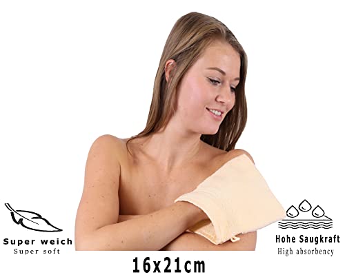 Betz Guanti da Bagno Premium 10 Pezzi - Guanti in Spugna per detersione Delicata del Viso - in 100% Cotone - Guanto da Bagno per Bambini Beige