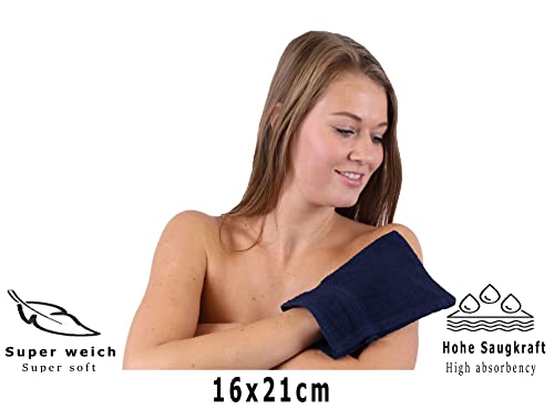 Betz Guanti da Bagno Premium 10 Pezzi - Guanti in Spugna per detersione Delicata del Viso - in 100% Cotone - Guanto da Bagno per Bambini Blu Scuro