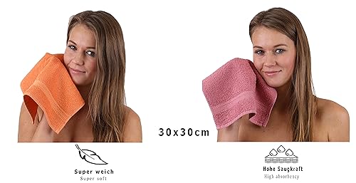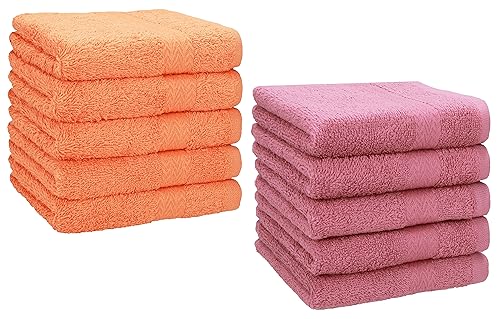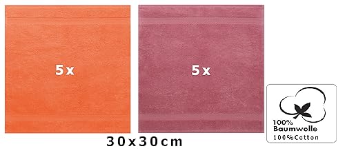 Betz Set di 10 Lavette Premium Misura 30 x 30 cm 100% Cotone Colore Arancione e Rosa Antico