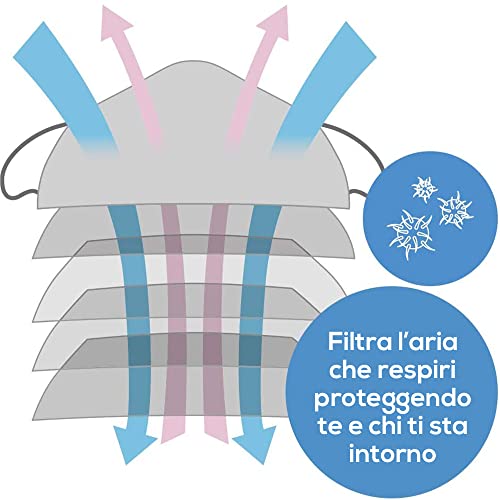 la mascherina filtra l'aria inspirata ed espirata offrendo un'ottima protezione