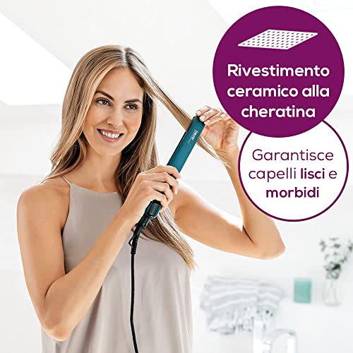 Beurer Hs 50 Ocean, Piastra Per Capelli Con Rivestimento In Ceramica Alla Cheratina Per Capelli Lisci, Display A Led Per Visualizzazione Della Temperatura, Impostazione Della Temperatura Livelli