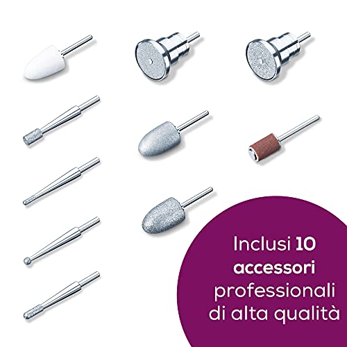 Beurer MP 100 Set Professionale per Manicure e Pedicure con 10 Accessori per la cura delle Unghie di Mani e Piedi, Adatto anche per le Unghie Artificiali come Gel o Semipermanente