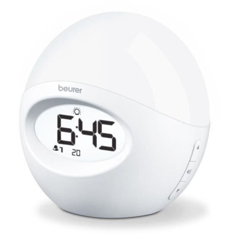 Dettagli tecnici Alimentazione elettrica Rete elettrica Colore alloggiamento (dettagli) Bianco Tipo prodotto Sveglia a luce Potenza 5 W Sveglia a luce Beurer WL 32 Svegliarsi bruscamente dal sonno profondo? Non è necessario: Con la sveglia luminosa si sveglierà delicatamente con una luce sempre più Heller. Per un inizio di giornata rilassante. Testo tradotto automaticamente Punti di forza e dettagli Luce d'atmosfera a LED con cambio di coloreSimulazione dell'alba (15 o 30 min.)Selezionabile tra radio e sveglia2 tempi di allarme regolabili10 posizioni di memoria radio Caratteristiche Svegliarsi in modo naturale con una luce sempre più HellerSveglia finale con radio o svegliaLuce d'atmosfera a LED con cambio di coloreSimulazione dell'alba (15 o 30 min.)Selezionabile tra radio e sveglia2 tempi di allarme regolabili10 posizioni di memoria radioIntensità della luce regolabileRetroilluminazione LCD con cambiamento di coloreFunzione Snooze 5-60 min.Utilizzabile come lampada da