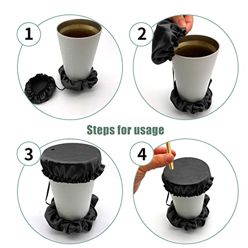 ❤ Scrunchie con coperchio per bevande facile da usare: indossa semplicemente lo scrunchie con coperchio per bevande sul polso o tra i capelli. Quando ne hai bisogno, estrai semplicemente il coperchio morbido dall'interno del coperchio per bevande scrunchie e posizionalo sopra il bicchiere. Metti una cannuccia e divertiti!