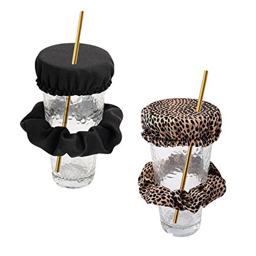 ❤ Scrunchie multiuso per la protezione delle bevande: il coperchio della tazza scrunchie può proteggere la tua bevanda da sabbia, insetti e sporcizia, perfetta per l'uso al bar, discoteca, spiaggia o picnic. Riceverai 2 pezzi di scrunchie per bevande (stampa nera/leopardo), PAGLIA NON INCLUSA.