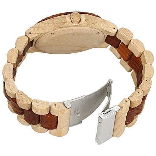 BEWELL uomo orologio automatico data Eco in legno naturale fatta a mano (stile B beige rosso)