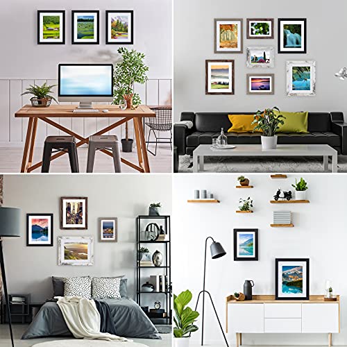 Materiali di alta qualità: Le cornici sono realizzate in robusto legno MDF. È una sorta di materiale ambientale senza tagliare alberi per proteggere la natura. È molto ignifugo, stente all'umidità, alla pressione, alla piegatura e alle cadute. Con una parte frontale in vetro trasparente HD potrete avere una visione chiara delle vostre immagini e proteggere le vostre foto da polvere, umidità, graffi o altri danni.