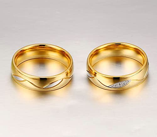 Beydodo Anelli Personalizzati Uomo Donna, Anello in Oro con Zircone Misura 17 e Misura 17 Anelli Coppia Fidanzati Acciaio Inossidabile
