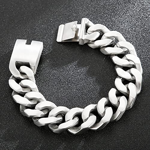 Beydodo Bracciale a Catena Donna, Braccialetto in Acciaio Inossidabile Donna 22.5cm Bracciale Argento a Catena Cubana 21mm Larghezza