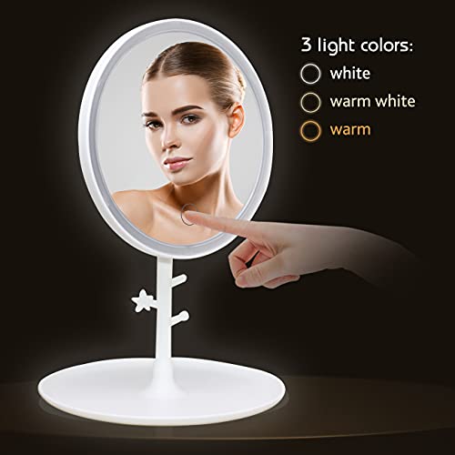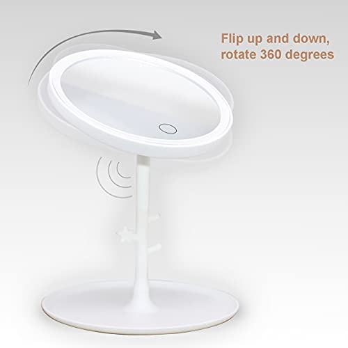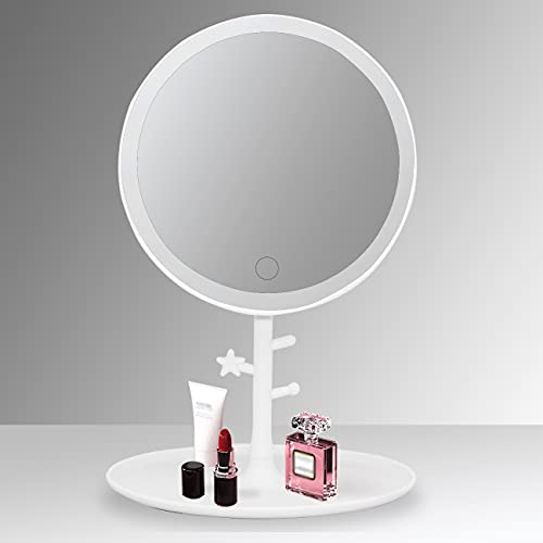 Beyeeway Specchio da trucco con luci Specchio da trucco Led Touch Screen Bianco/Rosa LED Specchio Luminosità Regolabile USB Ricaricabile Squillare - Bianco