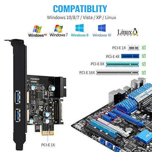 BEYIMEI PCIE USB 3.0 Card,PCI Express 1X a 2 porte con connettore USB 3.0 interno a 19 pin Scheda di espansione Superspeed 5Gbps PCI-e USBIII Controller Adattatore Supporto Windows 10/8 / 7 / XP