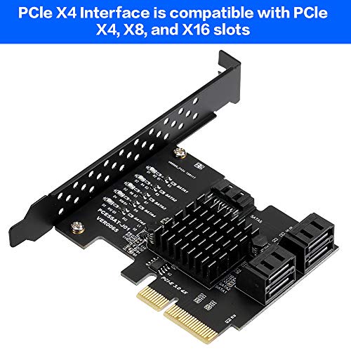 BEYIMEI Scheda PCIe SATA 5 Porte con 5 Cavi SATA, Scheda di espansione per Controller da PCIe a SATA, Scheda PCIe SATA 3.0 da 6 Gbps, Supporto per HDD o SSD (Chip Prodotto: JMicron JMS585)