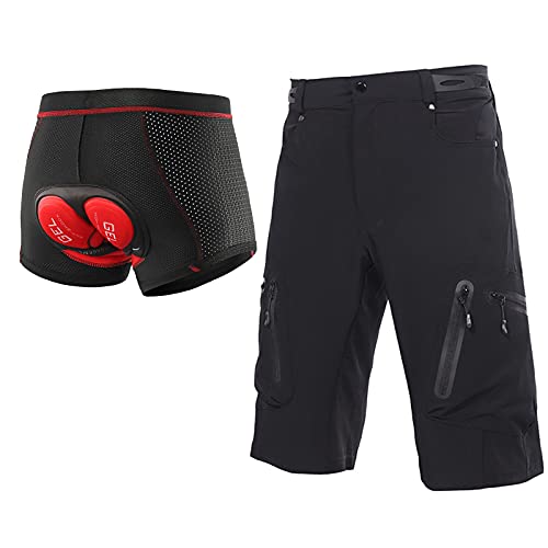 Beylore Pantaloncini Ciclismo Uomo MTB Gel Imbottiti Traspirante Pad 3D Estivo Pantaloncini da Bici Pantaloni MTB Enduro per Ciclismo da Montagna Cicismo su Strada,Nero,M