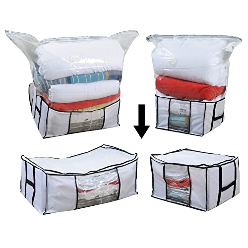 BEYOBUY-Contenitori per Armadio Salvaspazio,Sacchi Sottovuoto Vestiti,Organizer Armadio,Scatole Contenitori,Tessuto Oxford Resistente,Sacchi Sottovuoto Piumoni,Buste sottovuoto vestiti 2 Pezzi