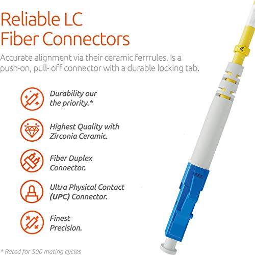 Beyondtech alta qualità e insensibile LC a SC Fiber Grade: G.657.A2 Cavo patch Single mode 9/125 OS2 fibra è appositamente progettato per applicazioni Ethernet veloci, Fibre Channel, Gigabit Ethernet, data center, locali, educative, LAN, SAN, commerciale, 10GBASE-L (1310 nm), 10GBASE-E (1550 nm), 1000BASE-LX (1300 nm) e Asynchronous Transfer Mode (ATM). Supporta i servizi video, dati e vocali.