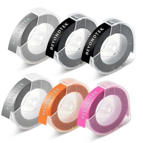 BEYONDTEK Ricambio per Dymo - Nastro per etichette in rilievo 3D da 9 mm, in plastica, colore: nero/argento/arancione/rosa), compatibile con Dymo Junior Omega Home Label Maker