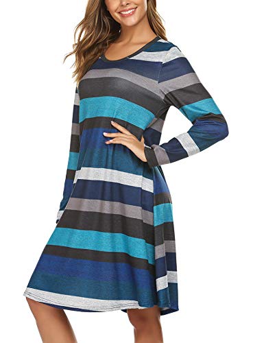Beyove - Vestito da donna a righe, largo, dritto, a maniche lunghe, per il tempo libero, per il tempo libero, tunica e morbida, confortevole