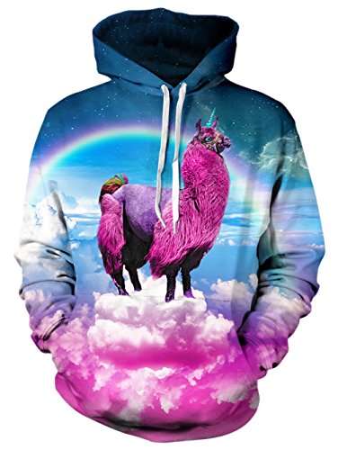 BFUSTYLE Felpa con Cappuccio con Stampa Unisex 3D Drawstring Rainbow Unicorn Felpa con Beige Natale con Grande Tasca