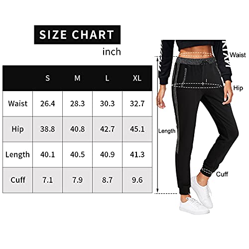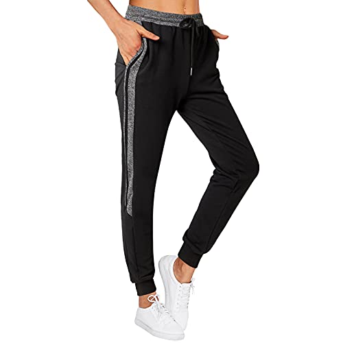 BFUSTYLE Pantaloni Tuta Donna in Cotone Tapered Pantaloni Sportivi con Tasche e Coulisse Sweatpants Elasticizzati Pantaloni Jogger per Allenamento Jogging Yoga Fitness Pilates Nero L