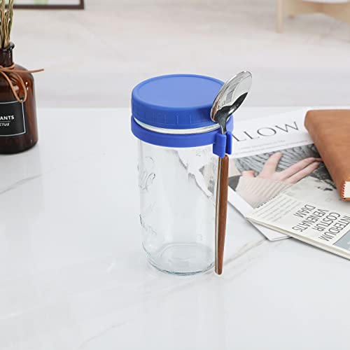 BFYDOAA Contenitore portatile per farina d'avena da 22 once barattoli di muratore con coperchio e cucchiaio, tazza di vetro per la colazione in viaggio per insalata yogurt latte di cereali