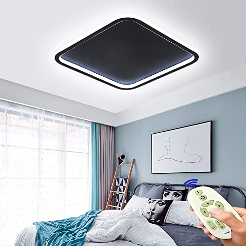BFYLIN 64W Plafoniera LED Soffitto Dimmerabile Luminoso Plafoniere Led Soffitto Moderna Lampade per Cucina ufficio Camera da Letto Soggiorno Sala da Pranzo corridoio (Nero-Piazza 50cm 64W)