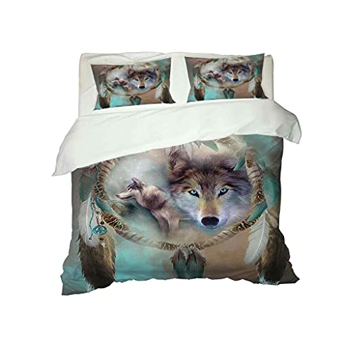 BFYRYL Set di biancheria da letto Lupo animale acchiappasogni 200x200 3 Pezzi Copripiumino Set, Antisbiadimento Traspirante Microfibra, Copripiumini Morbido e Confortevole con 2 Federe 50x75cm