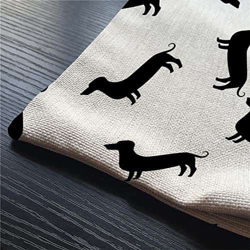 BGBDEIA Copricuscino decorativo in lino nero, motivo con bassotto Weiner, 30 x 50 cm, rettangolare, per giardino, patio, soggiorno, divano, divano