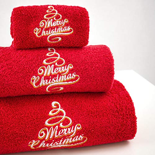 BGEUROPE Set di 3 asciugamani da bagno ricamati rossi - Ref. Merry Christmas