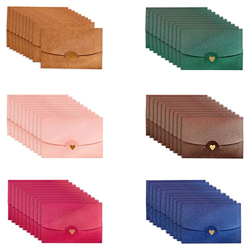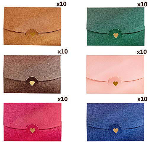 Bgfuni Mini Buste Colorate, Carino Buste Piccole, 60 Pezzi Busta Regalo, Bronzing Forma di Cuore envelopes per Biglietto Regalo di Nozze, Inviti Lettera, Festa di Compleanno, 10.5 x 7 cm (6 Colori)