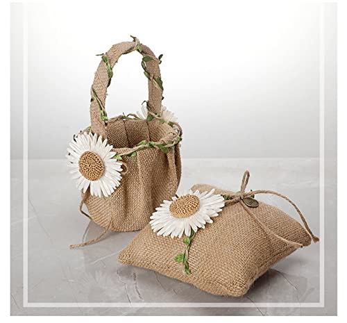 BGGQDG Cuscino Portafedi Cuscino per Anelli Nuziali E Cesto Fiori Matrimonio Cestino Matrimonio Cuscino FEDI Matrimonio Iuta Pizzo per Matrimonio Decorazioni (Color: Ring Pillow)