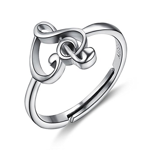 BGTY (Rings) Regolabile in Argento Sterling Chiave di Violino Bass Heart Music Note Anello per Le Donne