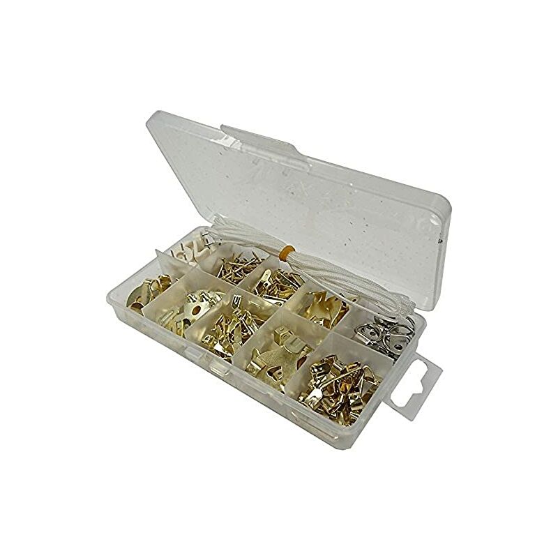 Bulk Hardware BH06591 assortimento di ganci per quadri, pins, Picture Cord & anelli in a 10 scomparti custodia per il trasporto.