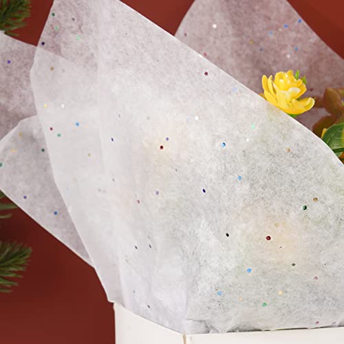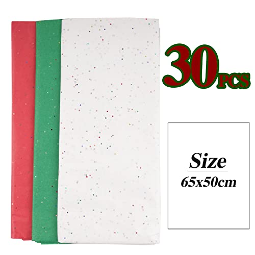 BHGT 30 Pz Carta Velina Natalizia Paillettes per Confezioni Carta da Regalo Imballaggio Bouquet Fiori Tessuti Lavori Artigianali Fai da Te Battesimo Cresima Festa Compleanno Scrapbooking Diario