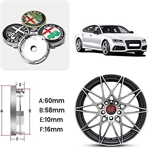 BHGTKL 4 Pezzi Coprimozzi Centrale per Alfa Romeo Giulietta Stelvio GT Giulia Mito 147 156 159 166 60mm, Auto Accessori Coprimozzo Per Cerchi ABS In Lega Antipolvere E Impermeabile