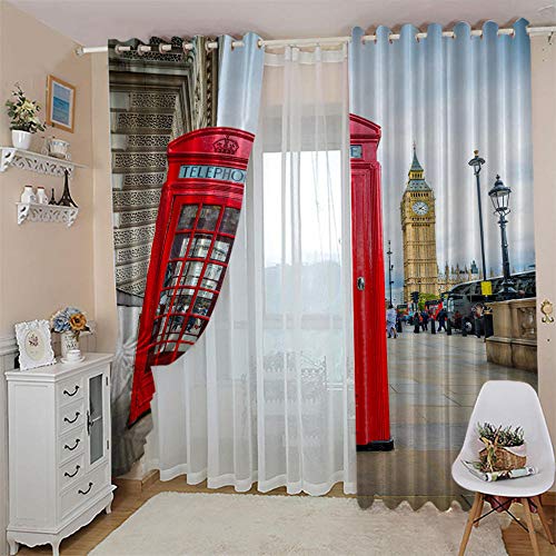 BHOMLY Tenda Per Bambini Cameretta Finestra 3D Cabina Telefonica Di Londra Street View Motivo Tende Oscuranti Per Interni Fantasia Con Occhielli 200X160Cm 2 Pezzi Tende Soggiorno Moderne Termiche Isol