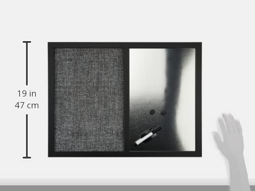 Bi-Office Black Shadow Pannello Per Avvisi Combo Con Tessuto Grigia e Lavagna Magnetica, Cornice Nera, 60 x 45 cm