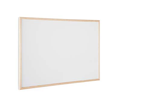 Bi-Office Lavagna Magnetica Bianca Basic Con Cornice In Legno, Superficie Speciale Cancellabile A Secco, 900 x 600 mm