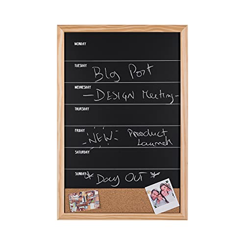 Bi-Office - Lavagna Nera per Gesso Week Planner, 400 x 600 mm, Cornice di Pino