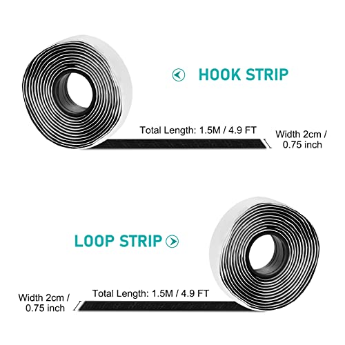 Biadesivo, Feltro Adesivo Forte Hook & Loop, Chiusura adesiva autoadesiva con gancio e anello (Hook 1,5 m + Loop 1,5 m) Nero